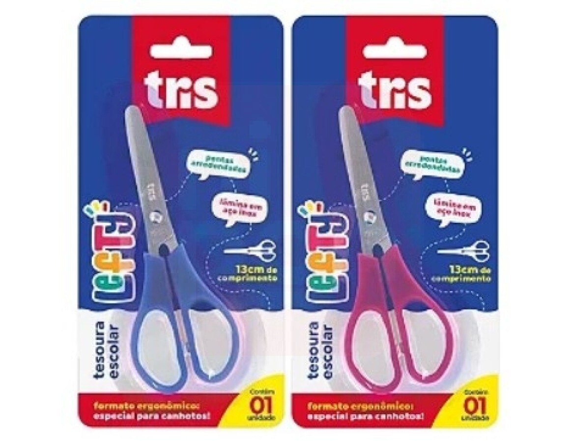 TESOURA ESCOLAR LEFTY TRIS, 13CM LEVE E CONFORTÁVEL.
